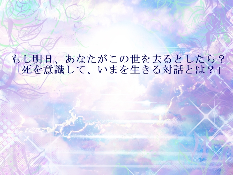 テーマは「もし明日、あなたがこの世を去るとしたら? 〜死を意識して、いまを生きる対話とは?〜」。
